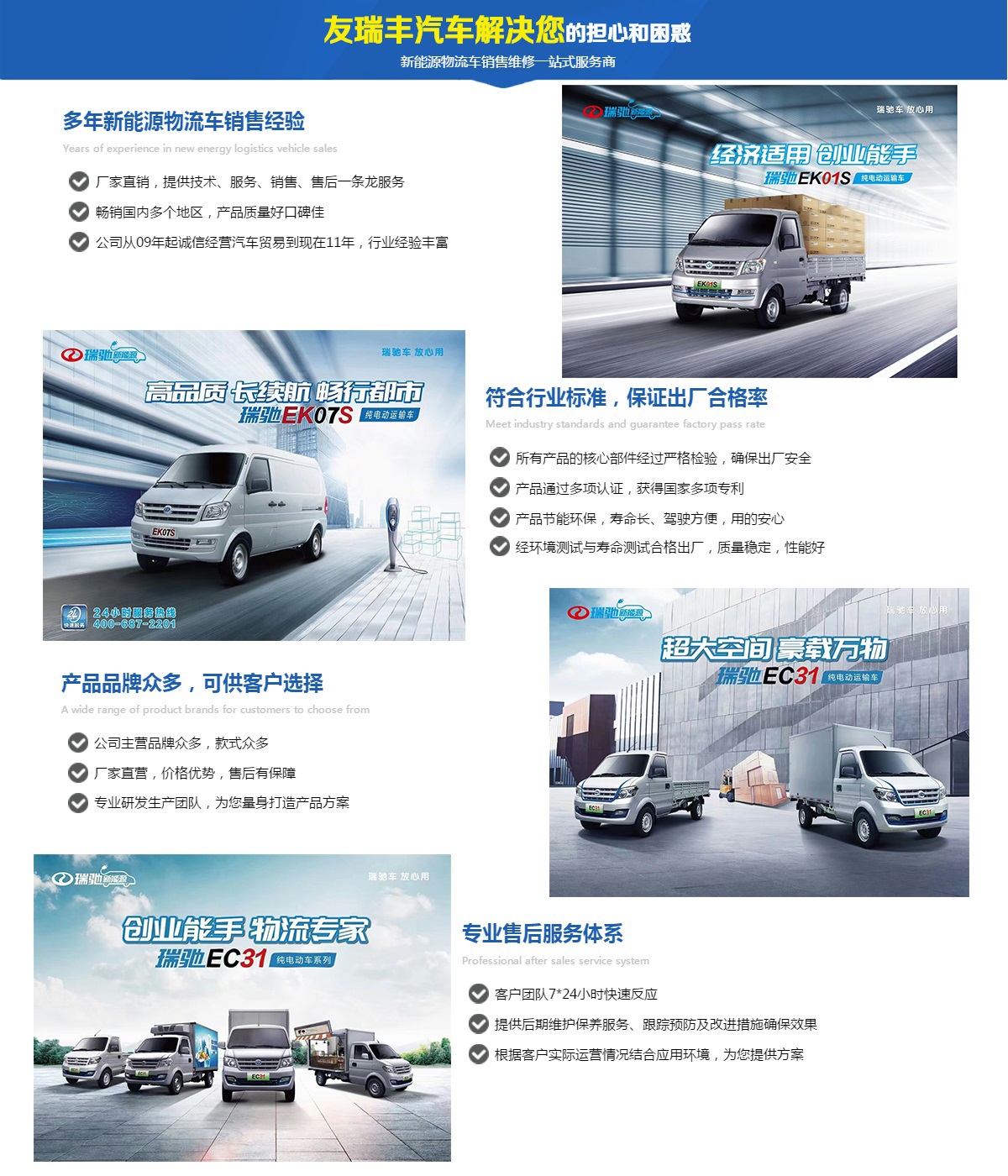 本公司為廈門新能源物流車專場,【只做品質(zhì)好售后有保障的車】。公司主營 瑞馳等品牌新能源物流車,市場綜合反映良好。三電系統(tǒng)5年20萬公里保修,銷售維護(hù)一條龍服務(wù),買得放心用得安心。【所以更專心】一致得到廣大客戶好評及信任支持!地址廈門杏林杏前路121號。